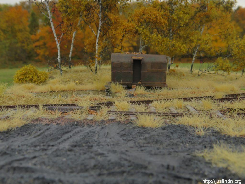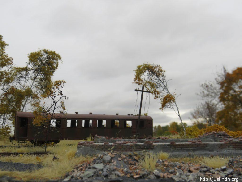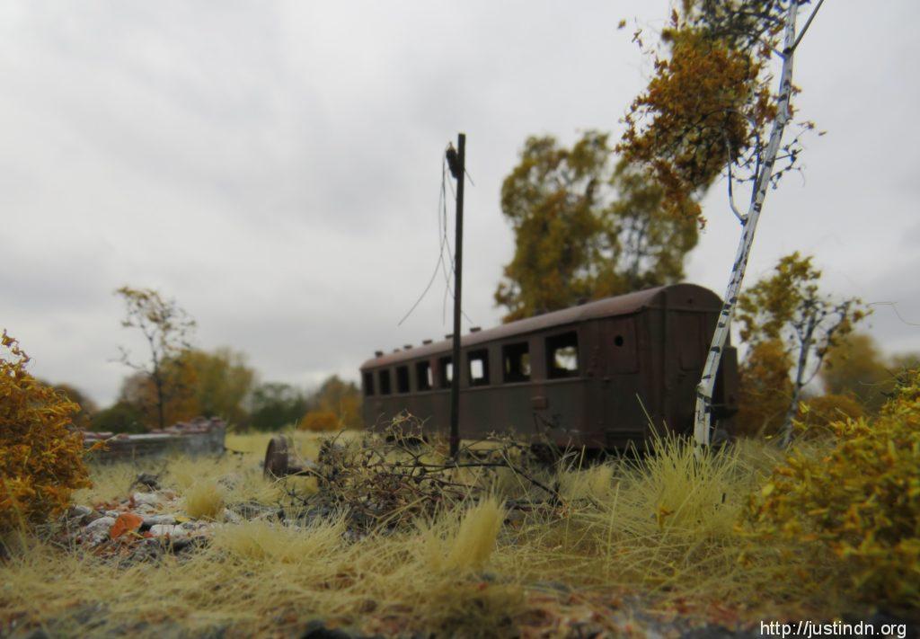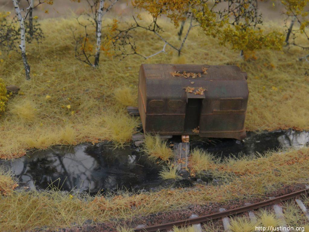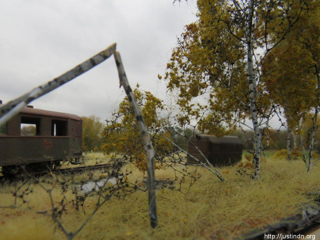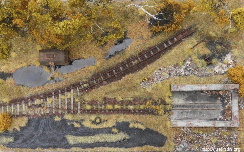 Диорама представляет фрагмент заброшенной узкоколейной железной дороги.