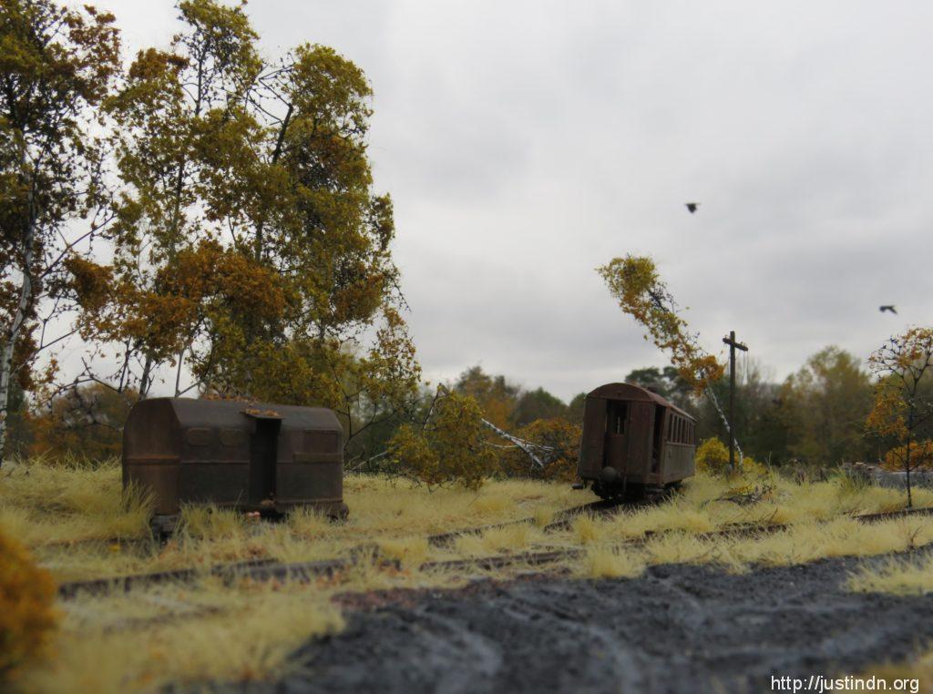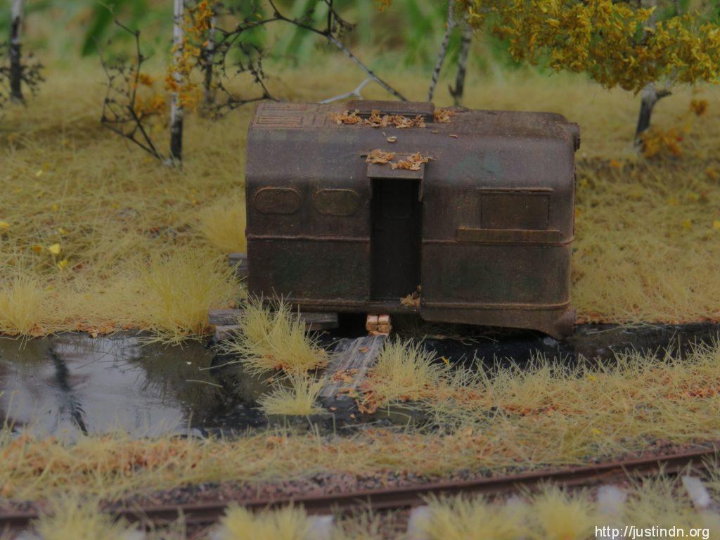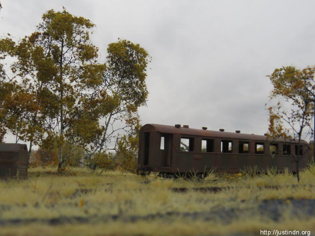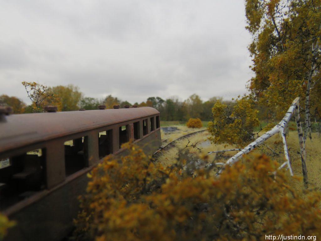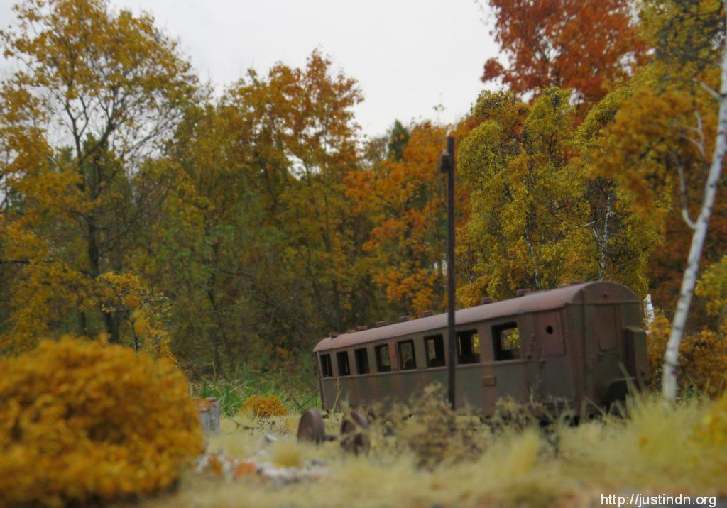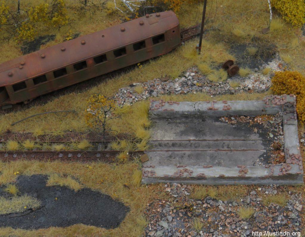 Диорама представляет фрагмент заброшенной узкоколейной железной дороги.