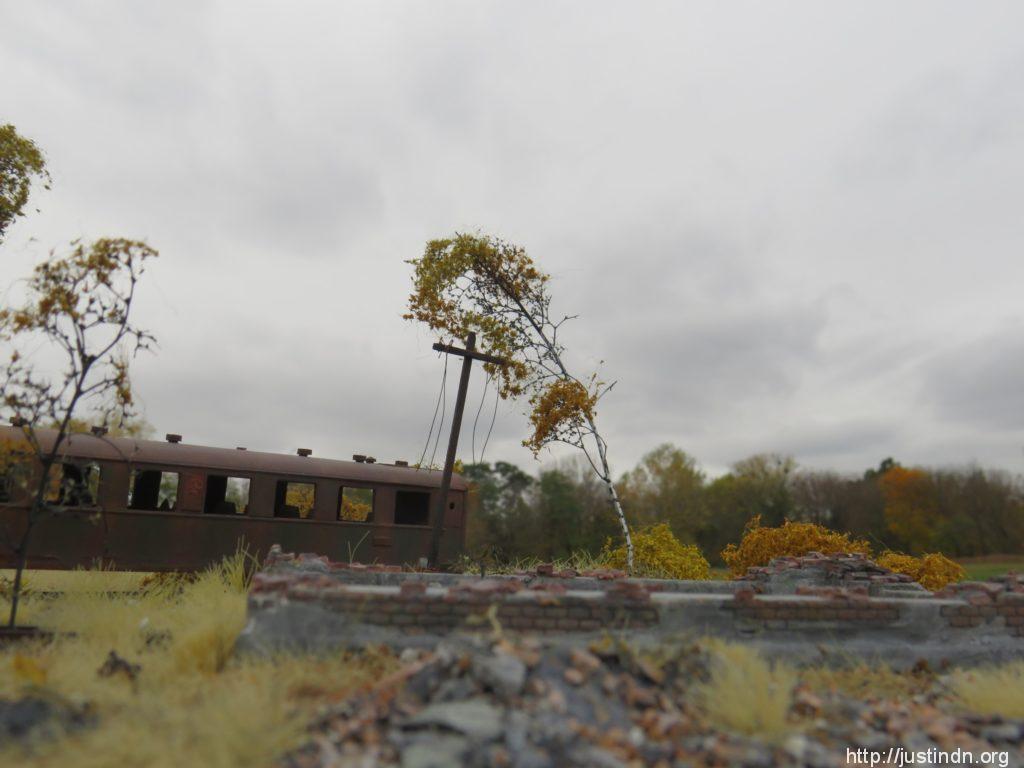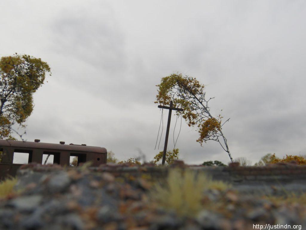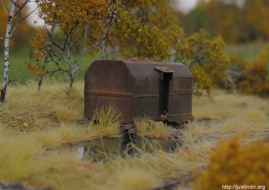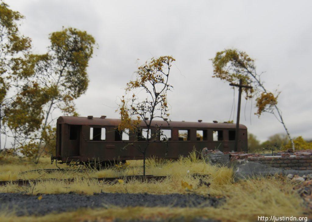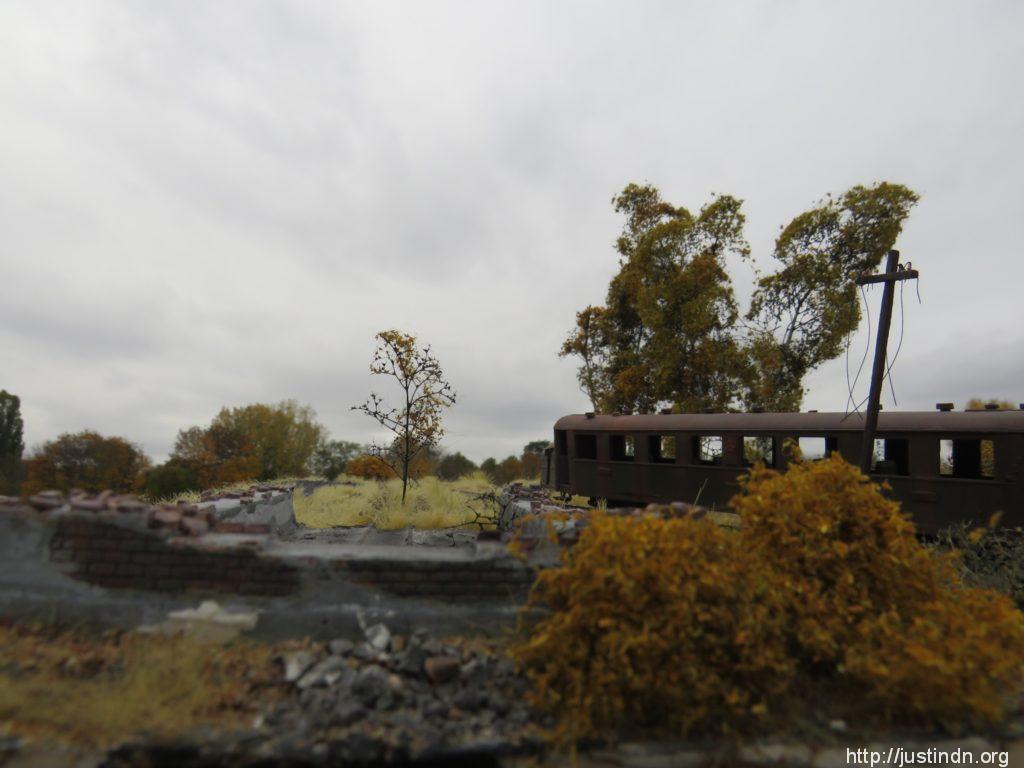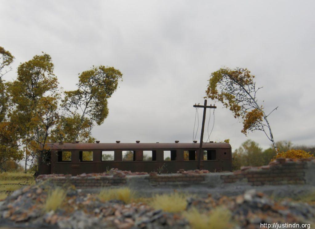 Диорама представляет фрагмент заброшенной узкоколейной железной дороги.