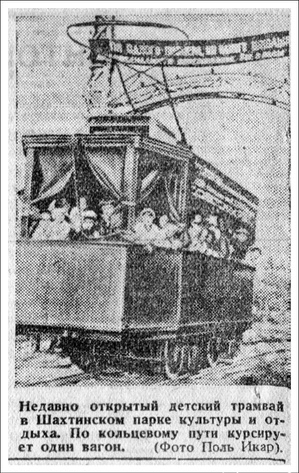 Уникальным явлением стал детский трамвай в г. Шахты Ростовской области. Кольцевая трасса длиной около 250 метров была построена в Шахтинском парке культуры и отдыха. Насколько нам известно, дети не принимали участия в проектировании и строительстве — все работы осуществляло Управление Шахтинского трамвая. Ширина колеи составляла 1200 мм.