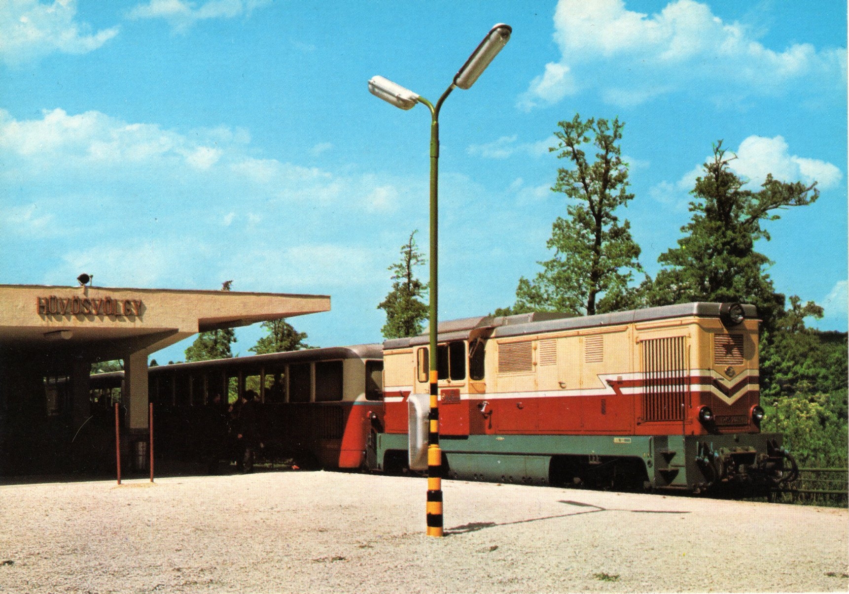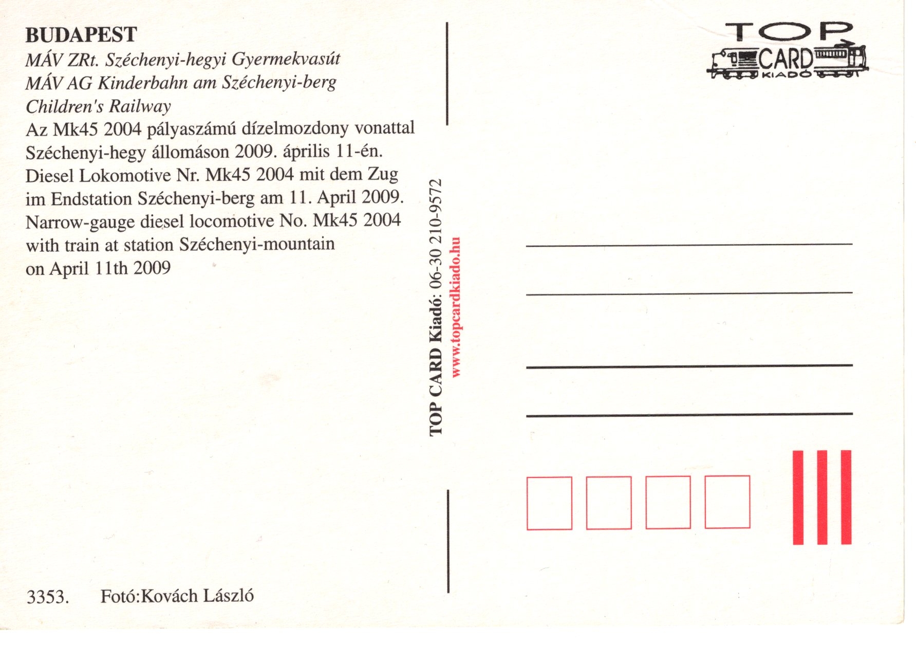 Узкоколейный тепловоз Mk45-2004 с поездом на станции Szechenyi-hegyi 11 апреля 2009 года
